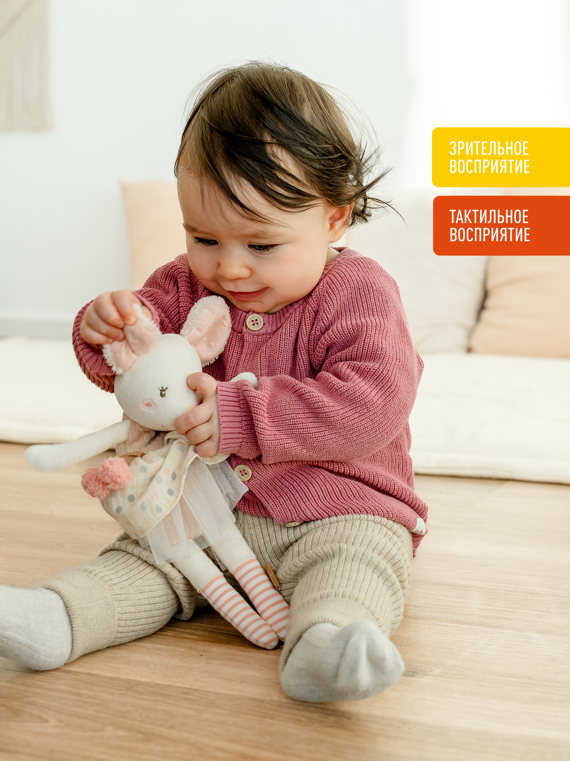 Мышка изготовлена в нежных пастельных тонах и наряжена в милый танцевальный костюмчик. Она легко завоюет сердце маленьких авантюристов и станет верным спутником как дома, так и в путешествиях.