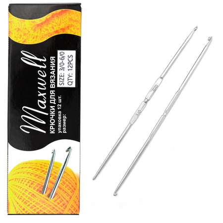 Крючки вязальные Maxwell 2,3 мм- 3,0 мм цвет никель упаковка 12шт.