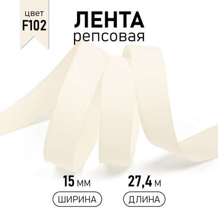 Лента Ideal репсовая в рубчик шир.15мм цв. F102 молочный уп.27,4м