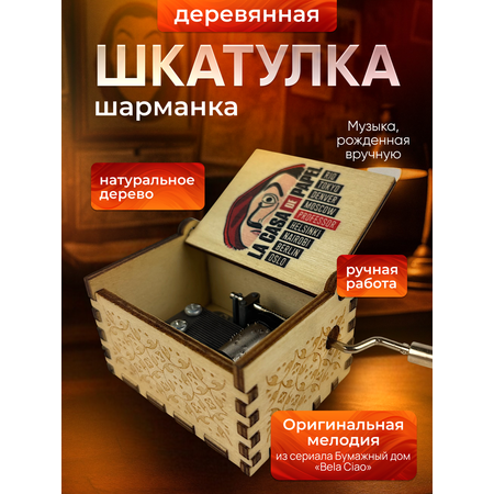 Деревянная музыкальная шкатулка "Бумажный дом" La casa de papel - оригинальный подарок на любой праздник!
