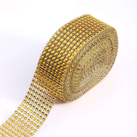 Лента со стразами 4см арт.TBY.1405 цв.золото уп.9,14м