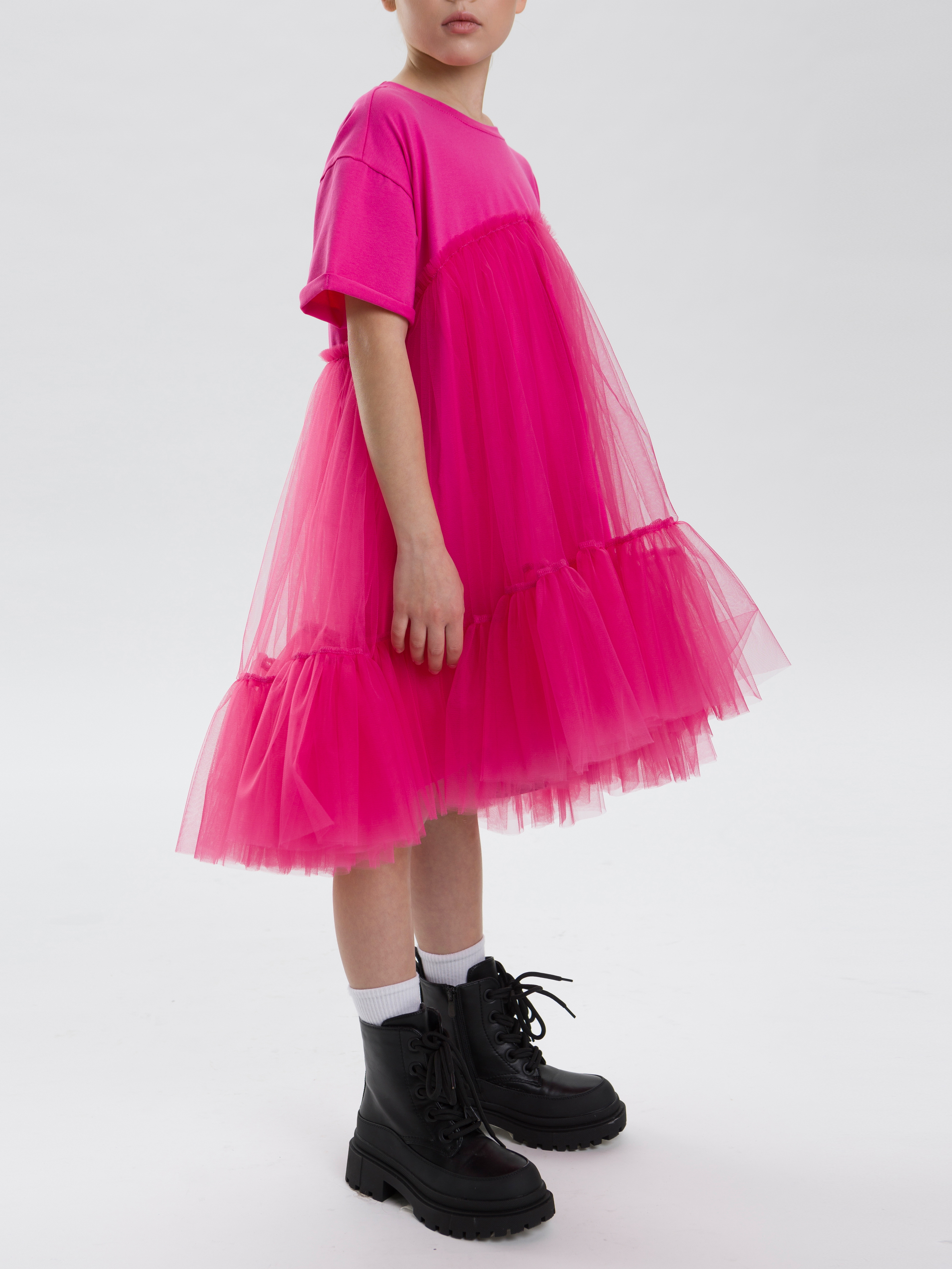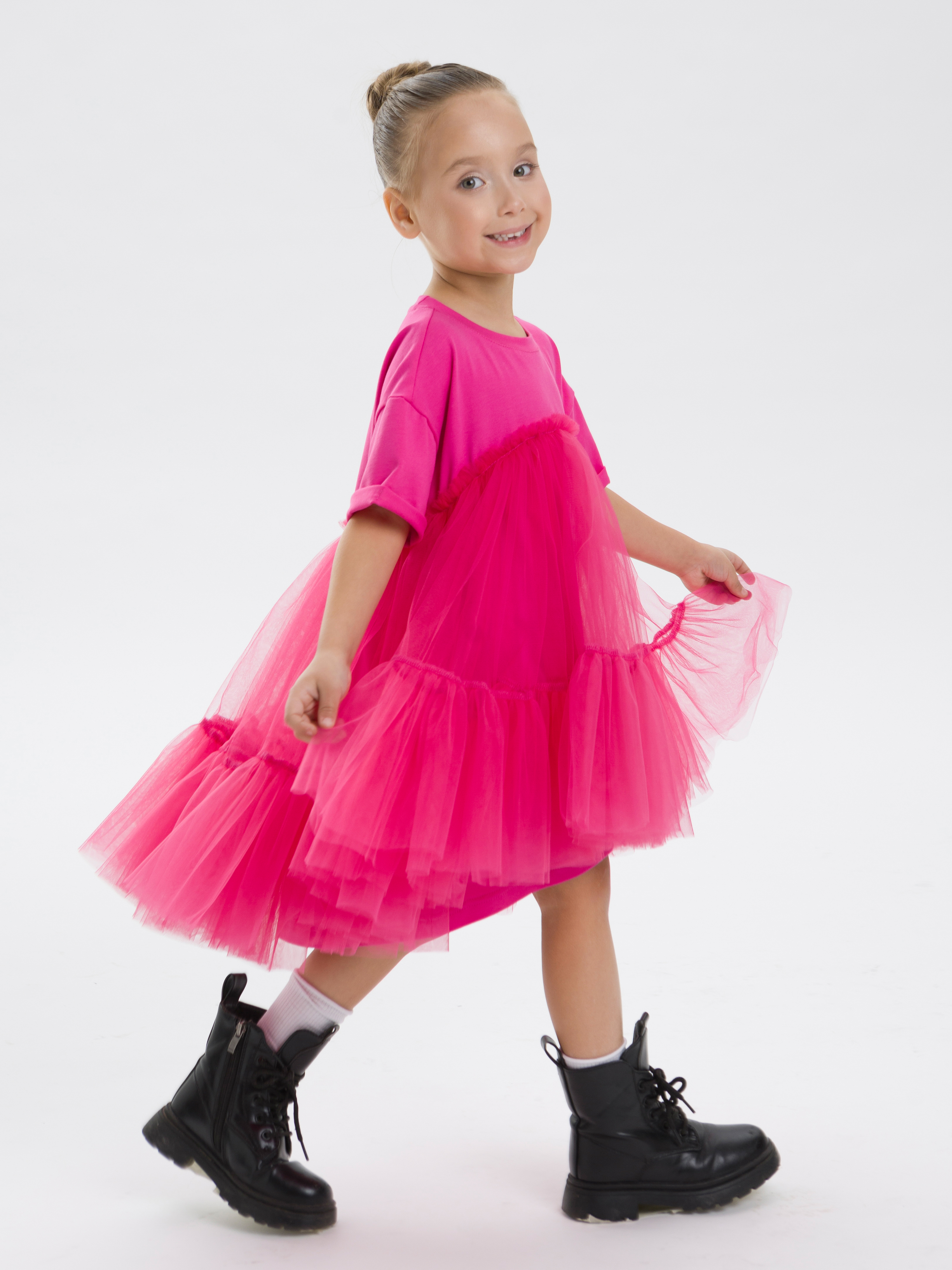 Это платье – идеальный выбор на выход для маленькой принцессы, мечтающей побывать на роскошном балу. Выполненное из мягкого хлопка и воздушной фатиновой ткани, оно сочетает в себе комфорт и элегантность. Нарядное и праздничное, оно станет незаменимым для таких мероприятий, как утренник, выпускной, новогоднее торжество или пышная вечеринка с красивыми подружками. Дизайн со спущенными рукавами, элегантной ассиметричной линией низа и нежной объемной сеткой придает образу легкость и изысканность. Высокая талия и продуманный силуэт подчеркивают фигуру, обеспечивая свободу движений и комфорт. Вечерняя модель подходит для теплых дней лета или осеннего сезона, а плотная основа из трикотажа делает его универсальным выбором для праздника в любое время года. Идеально для девочек, которые хотят выглядеть стильными. Это модное платье оверсайз подойдет для повседневного ношения в садике целый год, а также для особых случаев, таких как день рождения, театр, танцевальный вечер или шикарная дискотека. Его можно носить с аксессуарами, создавая как коктейльное ретро, так и современный образ снежинки. В дополнение к этому короткое, но элегантное дизайнерское решение прекрасно смотрится на фотосессии, превращая каждый кадр в новый шедевр. Нежные воланы, воздушные складки и мягкий хлопковый материал обеспечивают приятное прилегание к фигуре. Это легкое и утонченное детское платье идеально для юных королев, которым важно сочетание стиля и комфорта. Подойдет для милых девочек любого роста и веса благодаря крою, который отлично садится на любой тип фигуры.