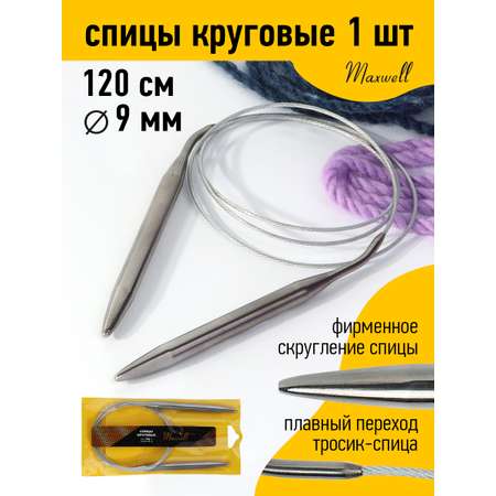 Спицы вязальные круговые Maxwell металлические на тросике 9,0 мм 120 см