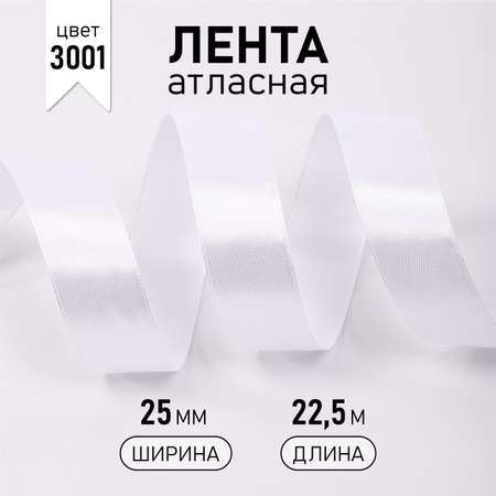 Лента атласная 25мм в инд.упаковке цв. 3001 кипенно-белый Magic4Hobby уп. 22,5м (±1м)