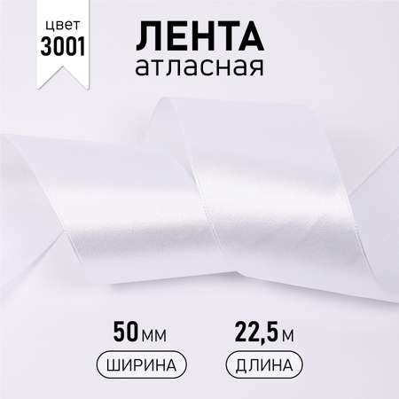 Лента атласная 50мм в инд.упаковке цв. 3001 кипенно-белый Magic4Hobby уп. 22,5м (±1м)