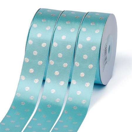 Лента атласная Ideal горошек серебро шир.25мм LDAS331 цв.331 бирюзовый уп.27,4м