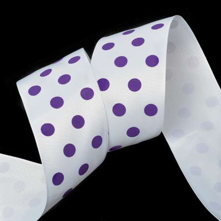 Лента репсовая в рубчик арт.LDRG02946550 (81) крупный горошек 50мм цв.белый-сиреневый уп.27,4м