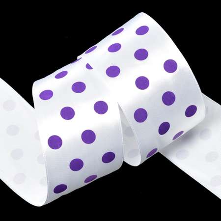 Лента атласная Ideal арт.LDAG02946550 (18) горошек 50мм цв.белый-сиреневый уп.27,4м