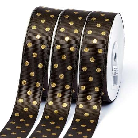 Лента репсовая Горошек золото шир.25мм LDRG860 цв.860 коричневый уп.27,4м