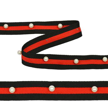 Тесьма-стропа Лампас с бусинами TBY PB5 шир.25мм цв.черный/красный уп.13.71м