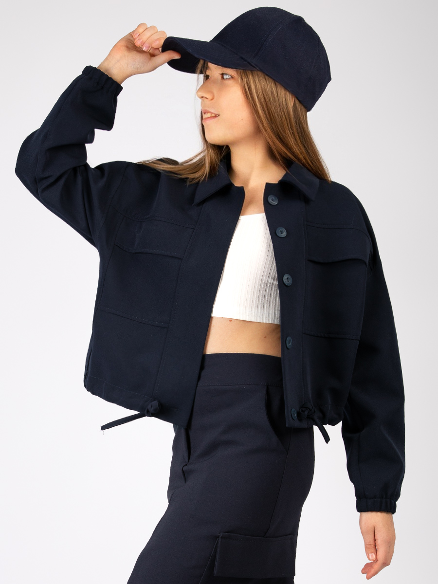 С опущенной линией плеча и ярким, трендовым дизайном, этот оверсайз жакет отлично сочетается как с юбкой, так и с брюками. Он подходит как для школы, так и для прогулок с друзьями, а также для встреч. Классический стиль с юбкой или спортивный с брюками карго — в этом бомбере ваша девочка будет выглядеть стильно и современно в любой ситуации.