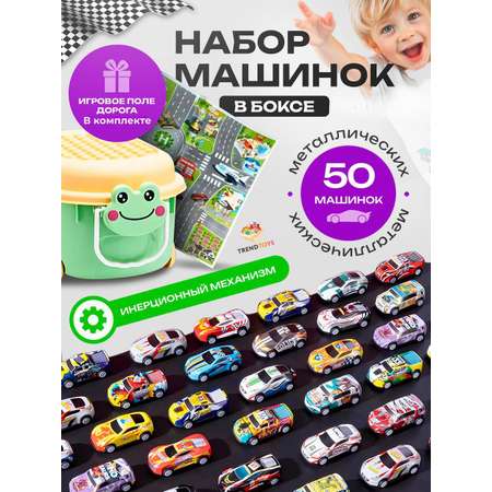 Набор машинок в боксе содержит 50 металлических машинок, каждая из которых выполнена из качественных материалов: металла, резины и пластика.