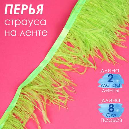 Перья на ленте Страус TBY арт.08-086 шир.8см цв. лайм уп.2м