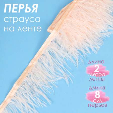 Перья на ленте Страус TBY арт.08-122 шир.8см цв. кремовый уп.2м