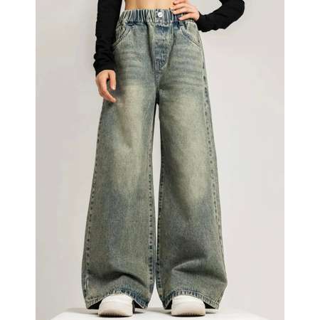 Джинсы палаццо для девочек. Джинсы выполнены из приятного к телу денима с добавлением хлопка и эластана, джинсы без начеса. Джинсы палаццо с высокой посадкой на резинке, джинсы дополнены шлевками для ремня, двумя карманами спереди и двумя карманами сзади. Джинсы для девочек необычно зеленой расцветки с потертостями. Джинсы палаццо для девочек отлично подойдут для повседневной носки. Перед ноской, рекомендуем предварительную стирку.