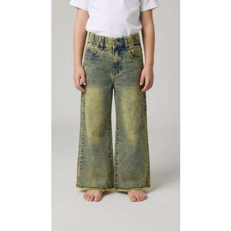 Джинсы палаццо для девочек. Джинсы выполнены из приятного к телу денима с добавлением хлопка и эластана, джинсы без начеса. Джинсы палаццо с высокой посадкой на резинке, джинсы дополнены шлевками для ремня, двумя карманами спереди и двумя карманами сзади. Джинсы для девочек необычно зеленой расцветки с потертостями. Джинсы палаццо для девочек отлично подойдут для повседневной носки. Перед ноской, рекомендуем предварительную стирку.