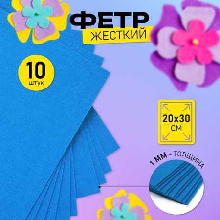 Фетр листовой жесткий Magic 4 Hobby 1мм 20х30см арт.FLT-H1 уп.10 листов цв.683/029 василек