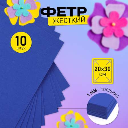 Фетр листовой жесткий Magic 4 Hobby 1мм 20х30см арт.FLT-H1 уп.10 листов цв.675/126 синий