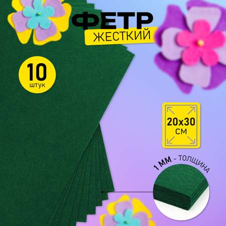 Фетр листовой жесткий Magic 4 Hobby 1мм 20х30см арт.FLT-H1 уп.10 листов цв.672/053 зеленый