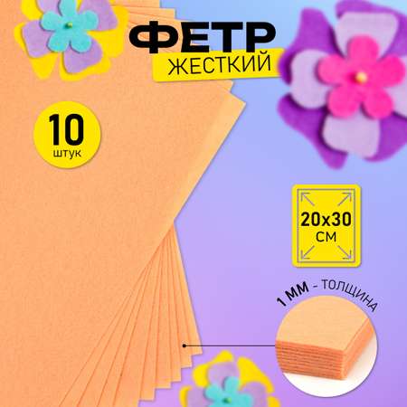 Фетр листовой жесткий Magic 4 Hobby 1мм 20х30см арт.FLT-H1 уп.10 листов цв.652/100 персик