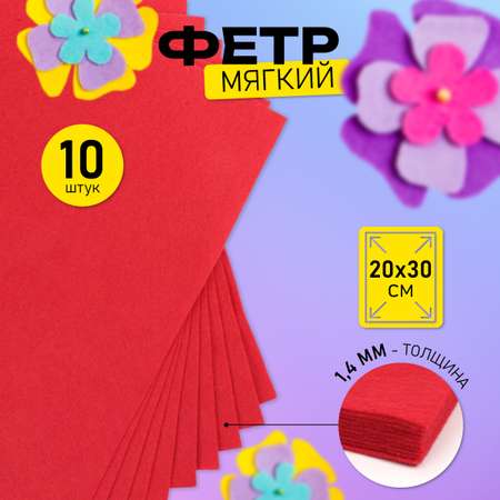 Фетр листовой мягкий Magic 4 Hobby 1,4мм 20х30см арт.FLT-WP671 уп.10 листов цв.671 красный