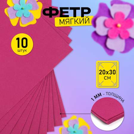 Фетр листовой мягкий Magic 4 Hobby 1мм 20х30см арт.FLT-S1 уп.10 листов цв.608/024 ярк.розовый