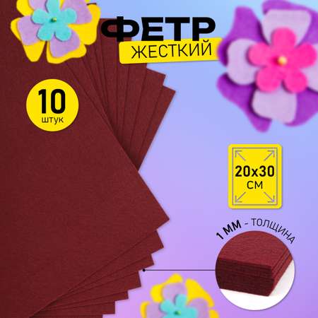 Фетр листовой жесткий Magic 4 Hobby 1мм 20х30см арт.FLT-H1 уп.10 листов цв.607/072 т.красный