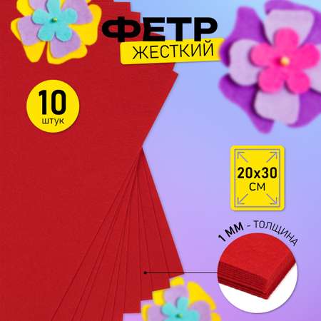 Фетр листовой жесткий Magic 4 Hobby 1мм 20х30см арт.FLT-H1 уп.10 листов цв.628/004 оранжевый