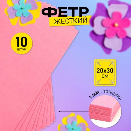 Фетр листовой жесткий Magic 4 Hobby 1мм 20х30см арт.FLT-H1 уп.10 листов цв.613/086 св.розовый