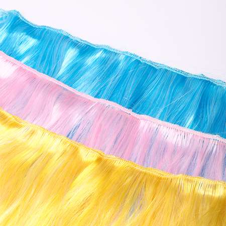 Прямые трессы. Набор трёх сказочных цветов, с эффектом омбре: 1. голубой 2. желтый 3.розовый. Длина пряди 22см. в пакете две трессы каждого цвета, каждая по 45(+/- 2) см.