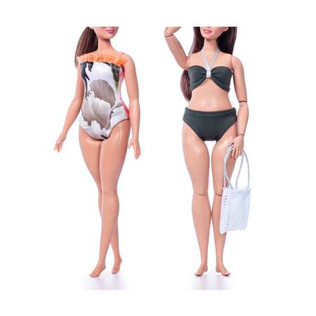Пляжная одежда от белорусской фабрики ВИАНА изготовлена из качественных материалов. Комплект состоит из закрытого и раздельного купальника, а также сумочки. Наряд выдерживает неоднократные деликатные стирки. Удобно надевать его благодаря эластичности материалов. Подходит на многие типы Барби Curvy Пышка 29-30 см. Товар сертифицирован. Мы являемся производителями. ВНИМАНИЕ! Кукла и обувь в комплект не входят. Заказанный товар может незначительно отличаться от описания и изображения, размещенного на портале (например, цвет и рисунок ткани, незначительные изменения в дизайне, упаковке и т.д., не влияющие на основные потребительские свойства товара). Не оставляйте яркие наряды на кукольном теле надолго! Иногда ткани насыщенных цветов могут его окрашивать. От нашей дизайнерской одежки в восторге и дети, и взрослые. В ней ваша куколка будет самой стильной! Вещи для Барби и Кена — это отличная развивающая игрушка и имитация взрослой одежды. С ней ребенок прорабатывает мелкую моторику, развивает умственные способности, воображение и чувство стиля. Миниатюрная мода — это то, что развивает насмотренность у маленькой девочки, учит следить за внешним видом и подбирать правильный образ для каждого случая. Кукольный гардероб вы можете преподнести как подарок на день рождения, новый год. Комплект придет вам в фирменной упаковке на картонной подложке , это обеспечивает сохранность при доставке. У некоторых изделий на обороте упаковки Вы найдёте изображение бумажной куклы и одежды для неё. Данная вырезалка может послужить как раскраска для ребенка и Вам не придется ее распечатывать.