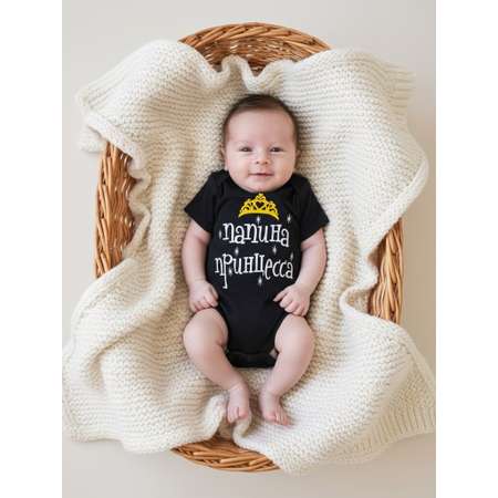 Боди для новорожденных девочек с короткими рукавами выполнен из трикотажного материала - интерлока (100% хлопок). На боди выполнен оригинальный принт для новорожденной. Стильная надпись для девочки "Папина принцесса" будет идеальна для первой праздничной фотосессии малышки. Бодик с надписью станет приятным подарком новорожденной: на рождение, первый месяц или годик, на день рождения, 8 марта, новый год. Бодик для малышей может использоваться, как первая одежда для грудничков от 56 до 86 роста для дома, для улицы, похода в поликлинику и в гости. Универсальный крой, надежные кнопочки на бодике мягко расстегиваются и крепко зафиксированы, с ними будет легко менять подгузник при необходимости. Трикотажный материал очень эластичный и не стесняет движения ребенка. Базовые однотонные цвета позволяют сочетать бодики с любыми другими вещами. Ярлыки во всех наших изделиях первого слоя вшиваются снаружи, чтобы не приносить дискомфорта ребенку. При правильном уходе стирка до 30 градусов, вещи не скатываются, не линяют и отлично держат форму. Товары для детей Российского бренда BeeKIDzzZ (БиКИДз), созданного мамой троих детей - это премиальное качество по очень приятной цене для самых любимых в мире.