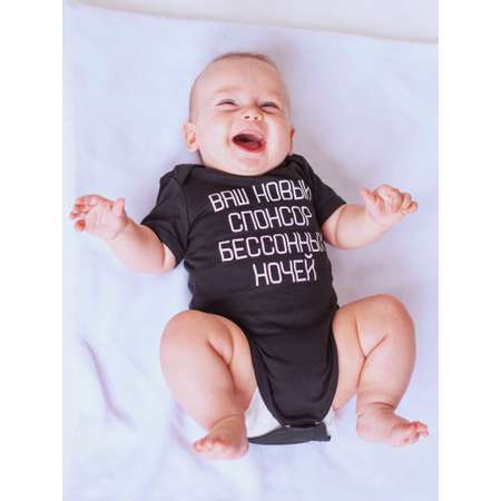 Боди для новорожденных мальчиков и девочек с короткими рукавами выполнен из трикотажного материала - интерлока (100% хлопок). На боди выполнен оригинальный принт для новорожденных. Стильная надпись для малышей "Ваш новый спонсор бессонных ночей" будет идеальна для первой праздничной фотосессии Вашей крохи. Бодик с прикольной надписью станет приятным подарком новорожденному: на рождение, первый месяц или годик, на день рождения, 23 февраля, 8 марта, новый год. Боди для малышей может использоваться, как первая одежда для грудничков от 56 до 86 роста для дома, для улицы, похода в поликлинику и в гости. Универсальный крой, надежные кнопочки на бодике мягко расстегиваются и крепко зафиксированы, с ними будет легко менять подгузник при необходимости. Трикотажный материал очень эластичный и не стесняет движения ребенка. Базовые однотонные цвета позволяют сочетать бодики с любыми другими вещами. Ярлыки во всех наших изделиях первого слоя вшиваются снаружи, чтобы не приносить дискомфорта ребенку. При правильном уходе стирка до 30 градусов, вещи не скатываются, не линяют и отлично держат форму. Товары для детей Российского бренда BeeKIDzzZ (БиКИДз), созданного мамой троих детей - это премиальное качество по очень приятной цене для самых любимых в мире.