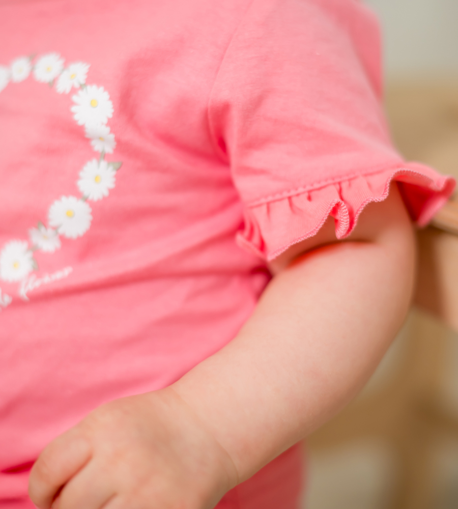 Этот комплект из шорт и футболки создан специально для активных малышек, которые любят двигаться и исследовать мир вокруг. Костюм выполнен из мягкого и приятного к телу хлопка, который обеспечивает комфорт в течение всего дня. Шорты и футболка украшены ярким принтом с милыми детскими мотивами. Такой дизайн добавит радости и позитива в образ вашей девочки. Модель имеет свободный крой, не сковывающий движения ребёнка. Костюм идеальный вариант, который понравится вашей маленькой моднице.