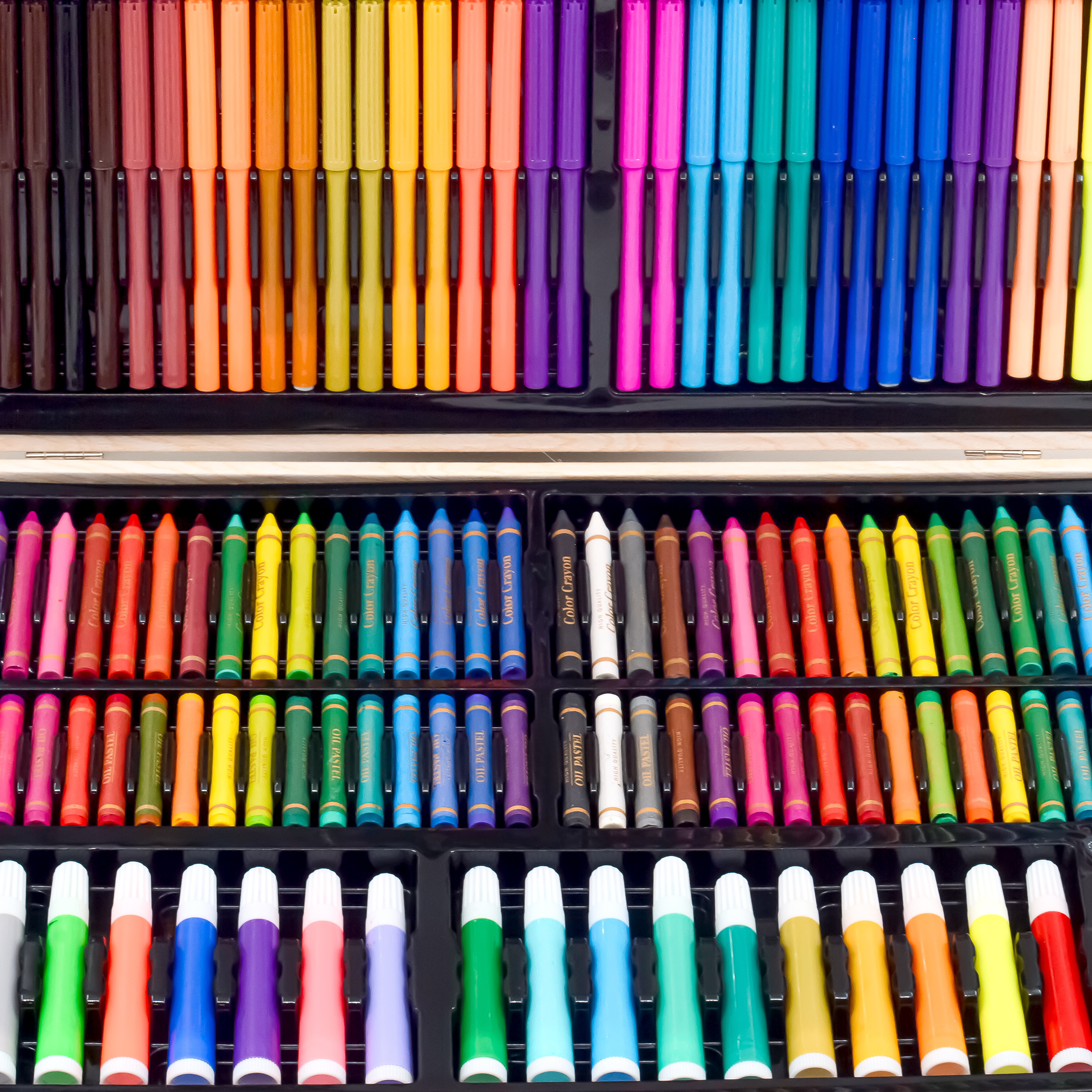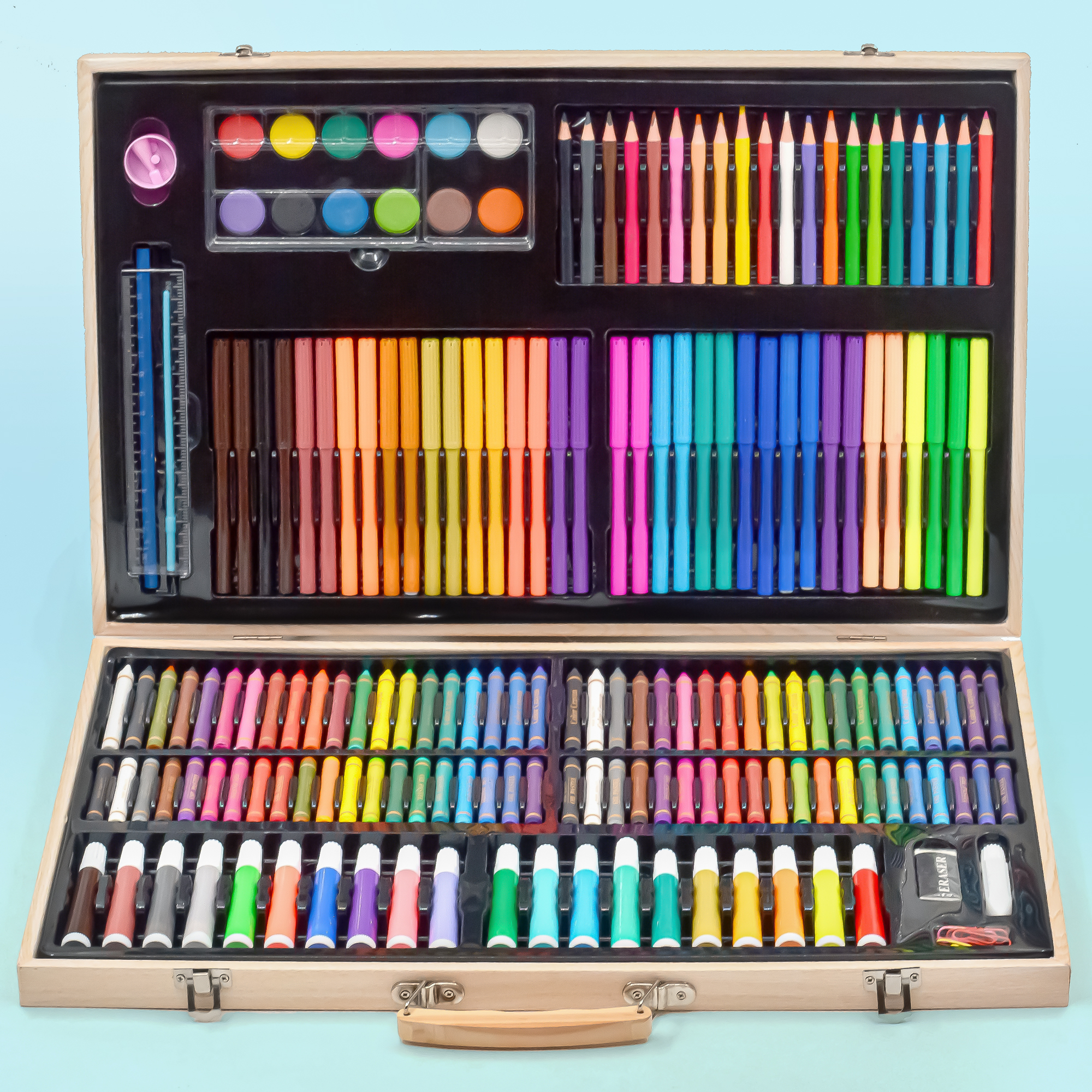 Набор для творчества состоит из 244 предметов (220 предметов для рисования и письма + воздушный пластилин 24 шт), которые помещаются в удобном чемоданчике. В набор входят: фломастеры - 36 шт, мини-маркеры – 20 шт, восковые мелки– 40 шт, масляная пастель – 40 шт, бумага – 10 листов, цветные карандаши – 20 шт, скрепки – 35 шт, акварельные краски – 12 шт, кисточка – 1 шт, палитра – 1 шт, точилка – 1 шт, клей – 1 шт, ластик – 1 шт, линейка – 1 шт, простой карандаш – 1 шт., воздушный пластилин - 24 цвета.Такой набор не только принесет интерес маленьким художникам, но и поспособствует развитию усидчивости, воображения, креативного мышления, аккуратности. Набор станет отличным подарком как для дошкольников, так и для детей постарше.