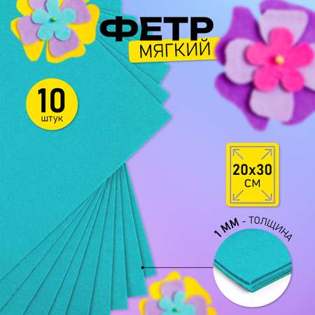 Фетр листовой мягкий Magic 4 Hobby 1мм 20х30см арт.FLT-S1 уп.10 листов цв.651/031 бирюза