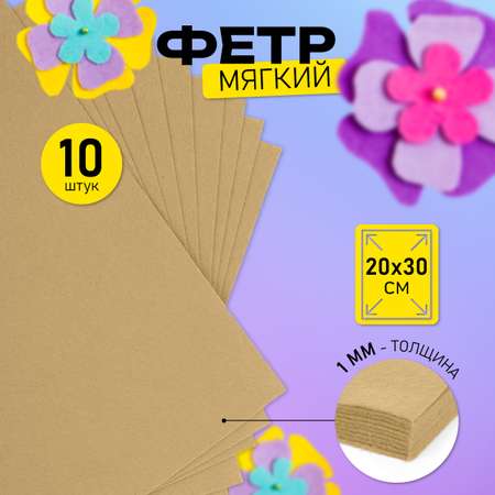 Фетр листовой мягкий Magic 4 Hobby 1мм 20х30см арт.FLT-S1 уп.10 листов цв.641/078 св.бежевый