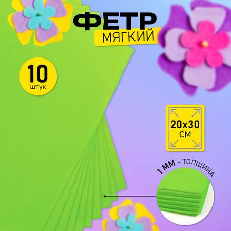 Фетр листовой мягкий Magic 4 Hobby 1мм 20х30см арт.FLT-S1 уп.10 листов цв.674/043 салатовый