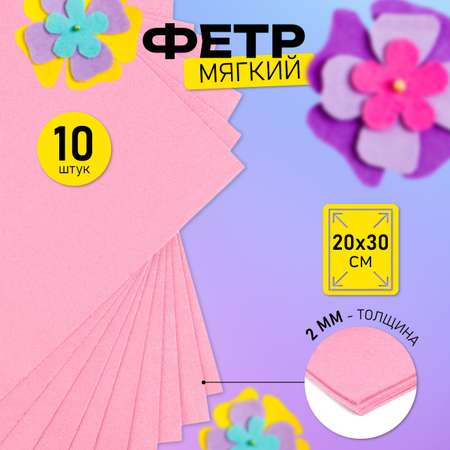 Фетр листовой мягкий Magic 4 Hobby 2мм 20х30см арт.FLT-S2 уп.10 листов цв.613/086 св.розовый