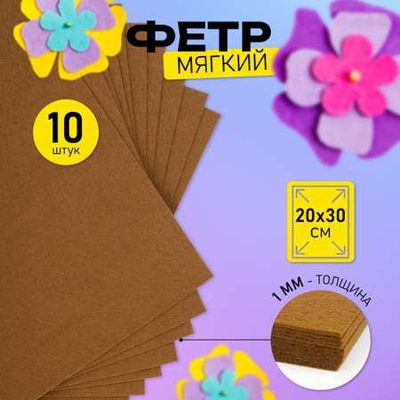 Фетр листовой мягкий Magic 4 Hobby 1мм 20х30см арт.FLT-S1 уп.10 листов цв.685/061 св.коричневый