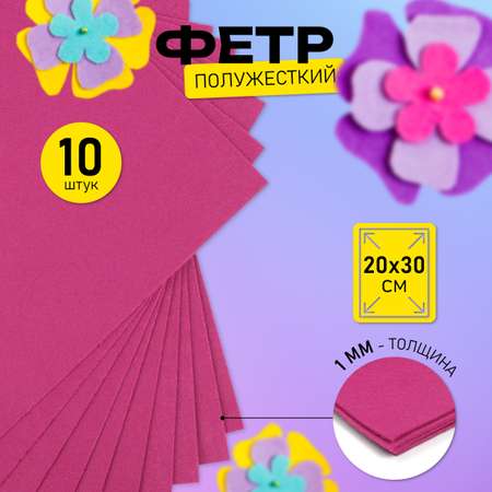 Фетр листовой полужесткий Magic 4 Hobby 1мм 20х30см арт.FLT-HS1 уп.10 листов цв.011 яр.розовый