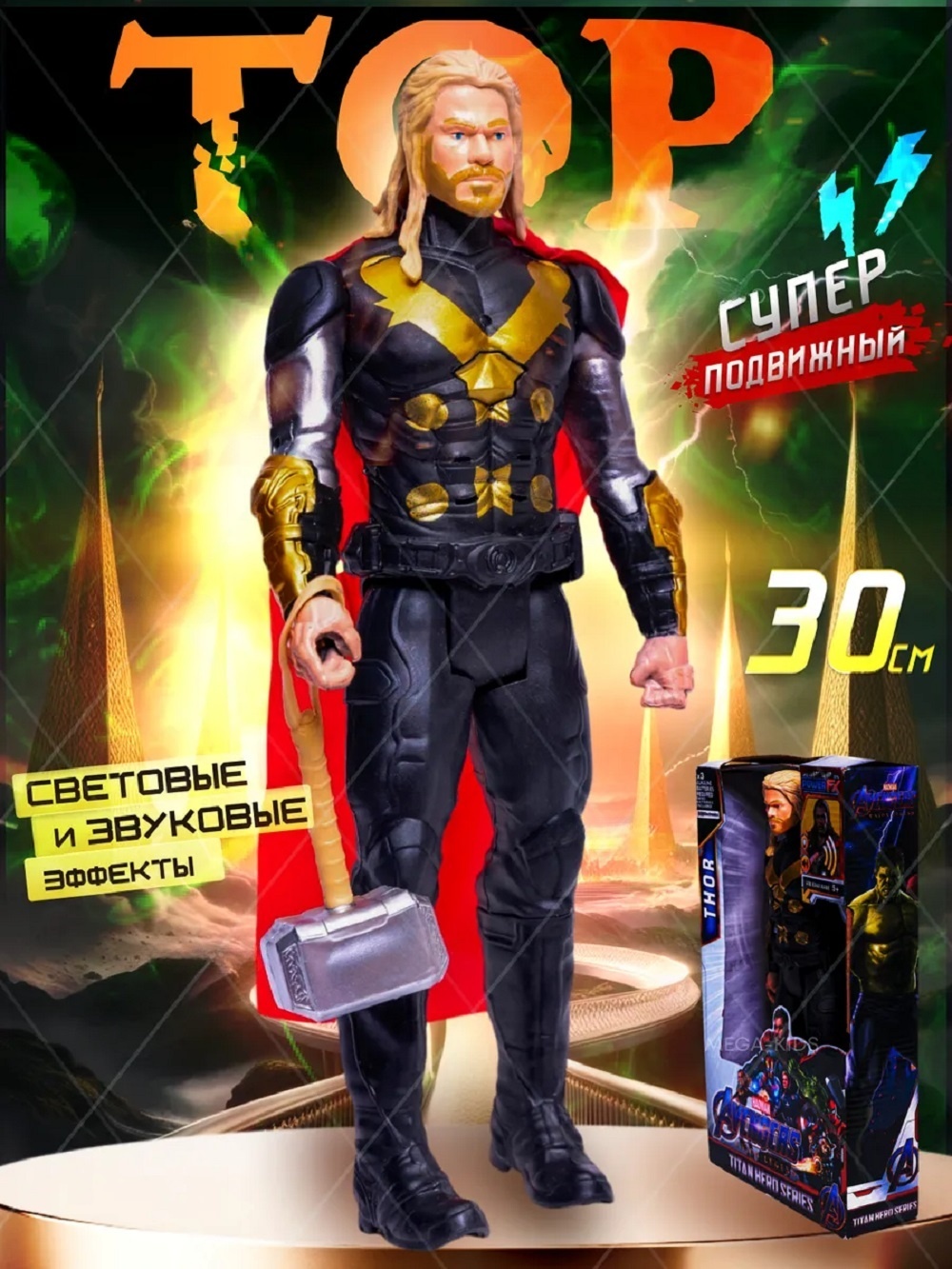 Эта фигурка имеет впечатляющую высоту в 30 см, что делает ее еще более реалистичной и привлекательной для маленького фаната Тора.