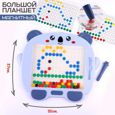 Детский магнитный планшет-мозаика, поможет развить фантазию и мелкую моторику вашему ребенку. Планшет представляет собой пластиковую доску, с магнитными цветными деталями внутри. Передвигай кружочки при помощи магнитного стилуса и создавай картинки. Игрушка выполнена из качественного пластика, а закругленные края и защитный экран обеспечат безопасную игру вашему ребенку. В магнитном планшете отлично сочетаются игровая и развивающая функция. Игра поможет ребенку изучать цвета, счет и обучаться сортировке. Также магнитная доска поможет ребенку изучать направления, без труда закрепить, где лево, а где право. Просто дайте ребенку задание, например, составить влево 4 желтых кружочка, а затем вверх 3 красных. Подарите своему ребенку возможность фантазировать, создавая магнитные картины, что будет способствовать развитию фантазии и творческих навыков. А книжка с заданиями поможет без труда начать создавать шедевры из магнитиков. С магнитным планшетом занятия с ребенком станут интересней и увлекательней. Упаковка, подарочная яркая коробка. Игрушка отлично подойдет для подарка как мальчику, так и девочке на любой праздник и просто без повода.