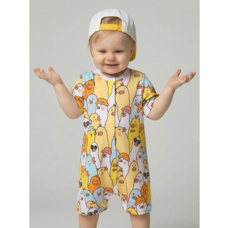 Песочник для новорожденного с рисунком. Изготовлен из ткани кулирка 100% хлопок. Рукава короткие, спереди застежка кнопки. Песочник подходит для прогулок и для дома.