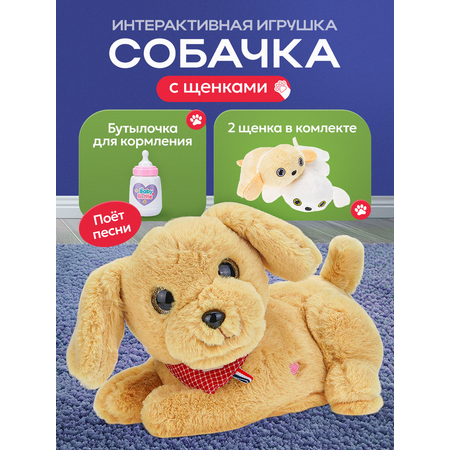 Тактильно-интерактивная игрушка "Собака с щенками" (28*21*17, звук, 3*ААА не в комп) (Арт. И-8055)