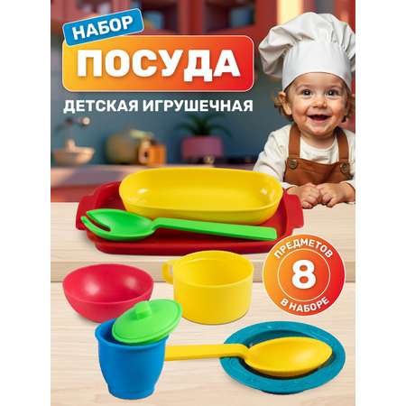 Игровой набор посуды идеально подходит для игры в кулинарию и другие сюжетно-ролевые игры. Детская посуда поможет развить у ребёнка фантазию, мелкую моторику и творческие способности.