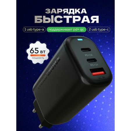 Устройство оснащено двумя разъемами Type-C и одним разъемом USB, что делает его универсальным для подключения различных кабелей и гаджетов. Поддержка протоколов быстрой зарядки QC3.0 и PD45W позволяет сократить время зарядки до минимума, обеспечивая стабильное и мощное питание для устройств, совместимых с этими стандартами.
