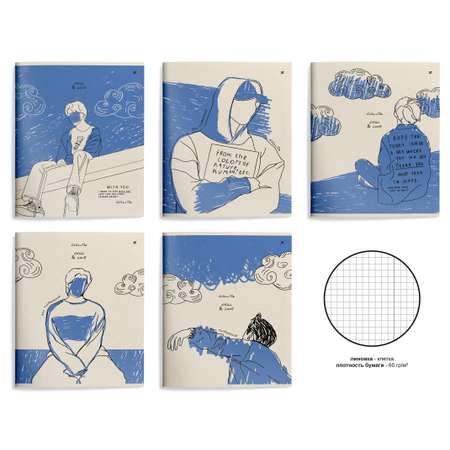 Набор тетрадей 48 листов в клетку LOREX BLUE MELANCHOLIA 5 шт