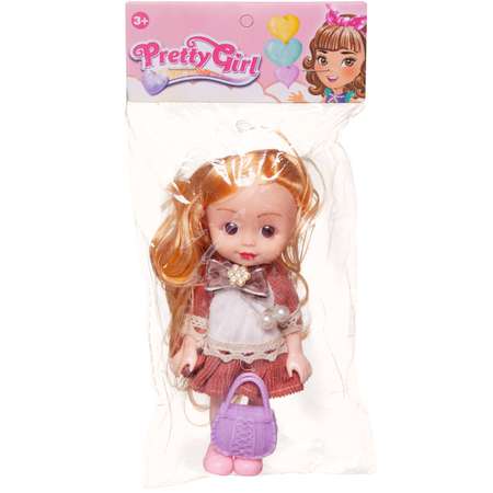 Кукла Junfa 16 см с сумочкой в бело-коричневом платье