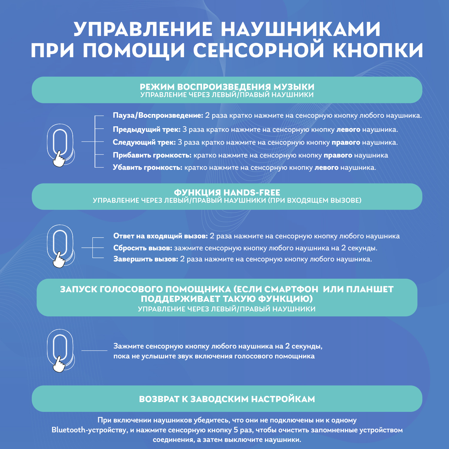 | Функции: | bluetooth, регулировка громкости |